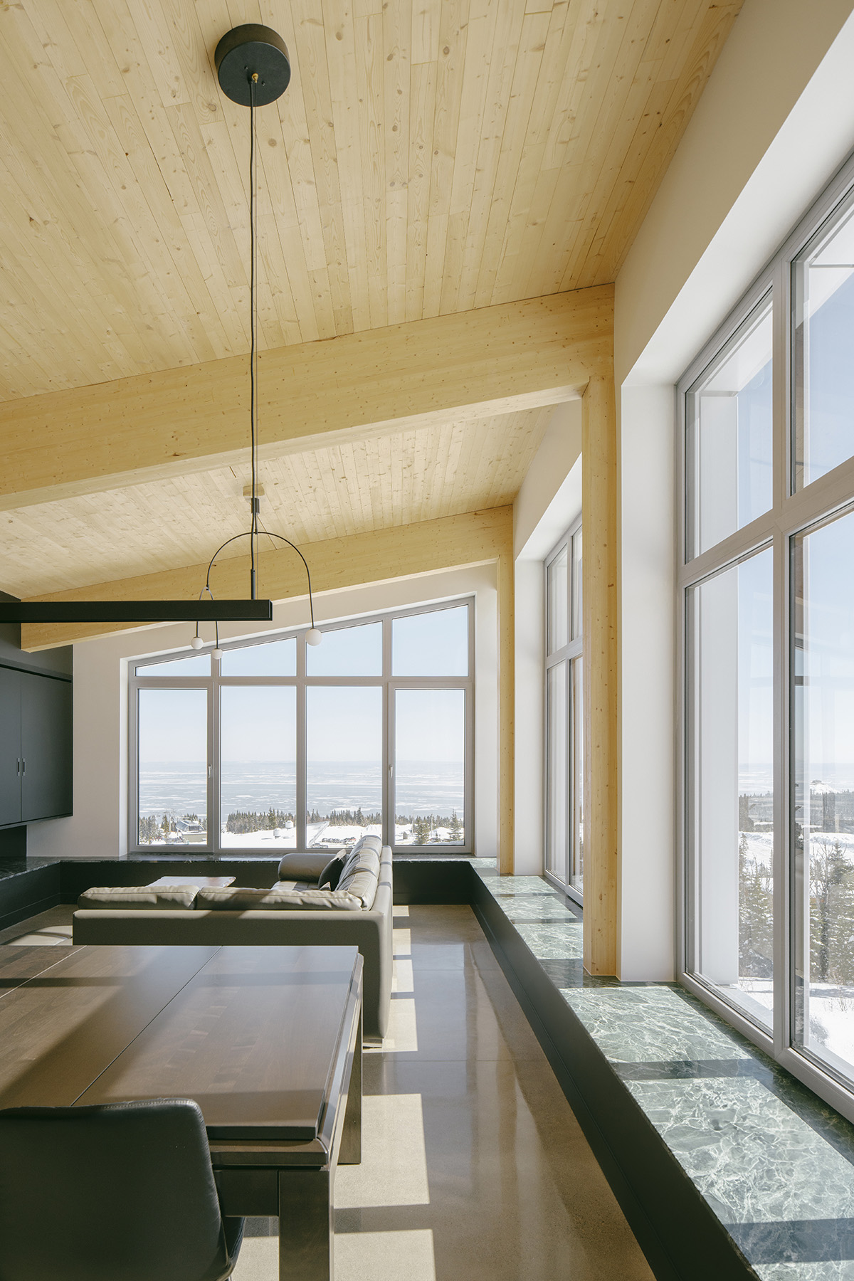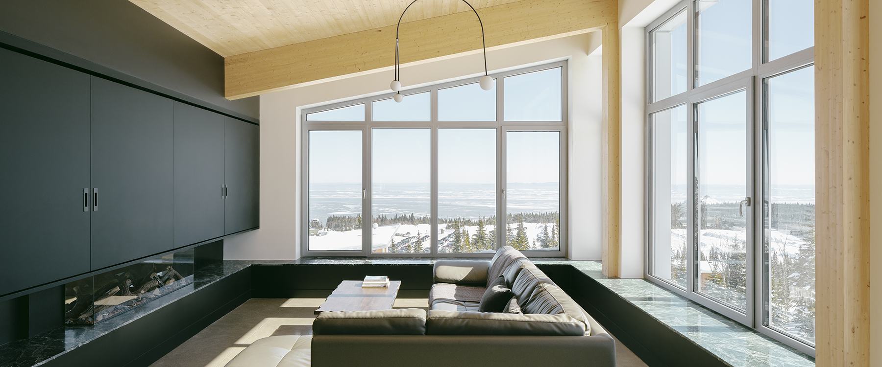 Des défis, certes, mais aussi énormément de plaisir à concrétiser ce magnifique projet architectural ! Il offre à notre client et à sa famille un cadre de vie exceptionnel, en pleine montagne, avec une vue imprenable sur le fleuve Saint-Laurent et ses levers de soleil spectaculaires. Tout cela dans l’atmosphère chaleureuse d’une résidence pensée et construite pour atteindre une performance écoénergétique unique au Québec, tout en affichant un niveau de finition architecturale d’une grande qualité.