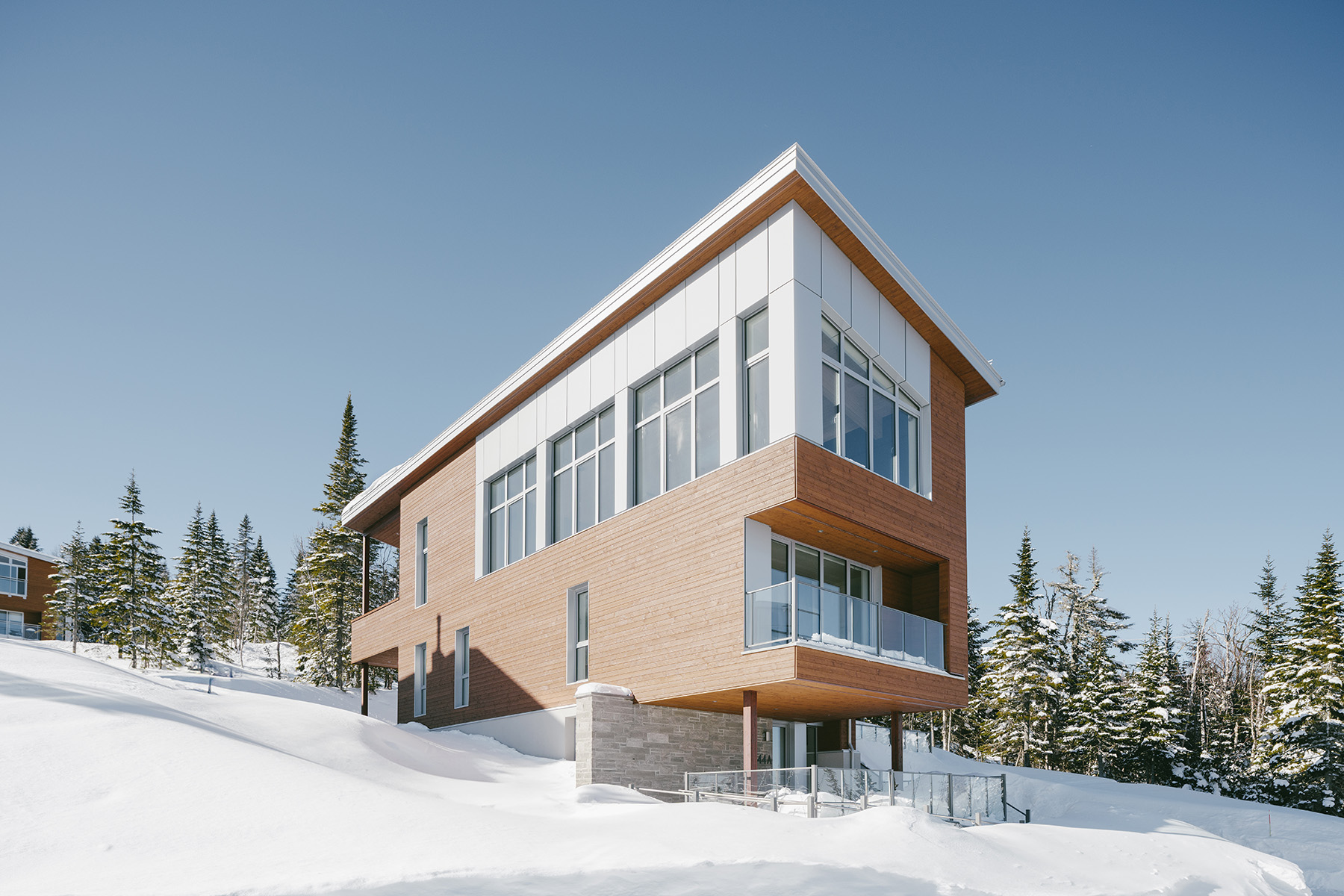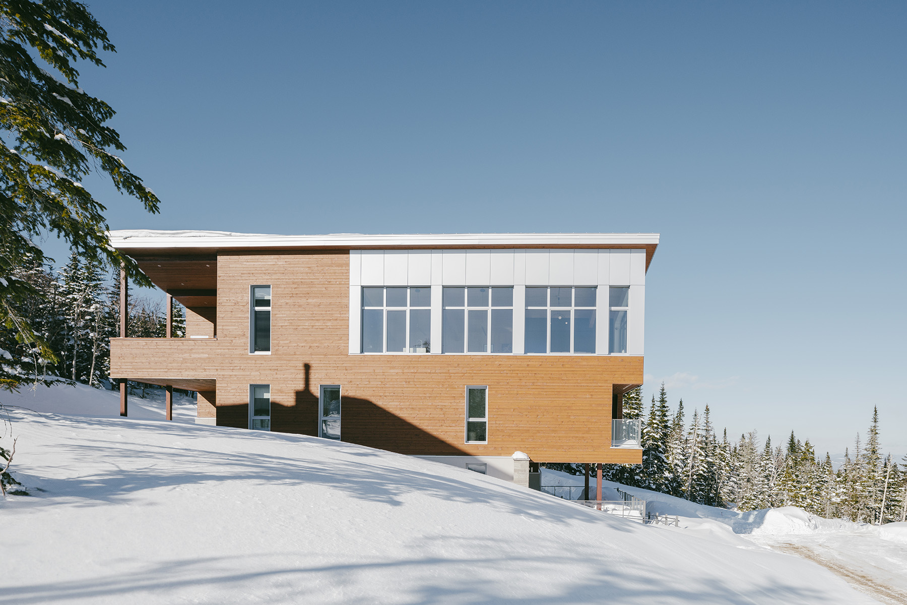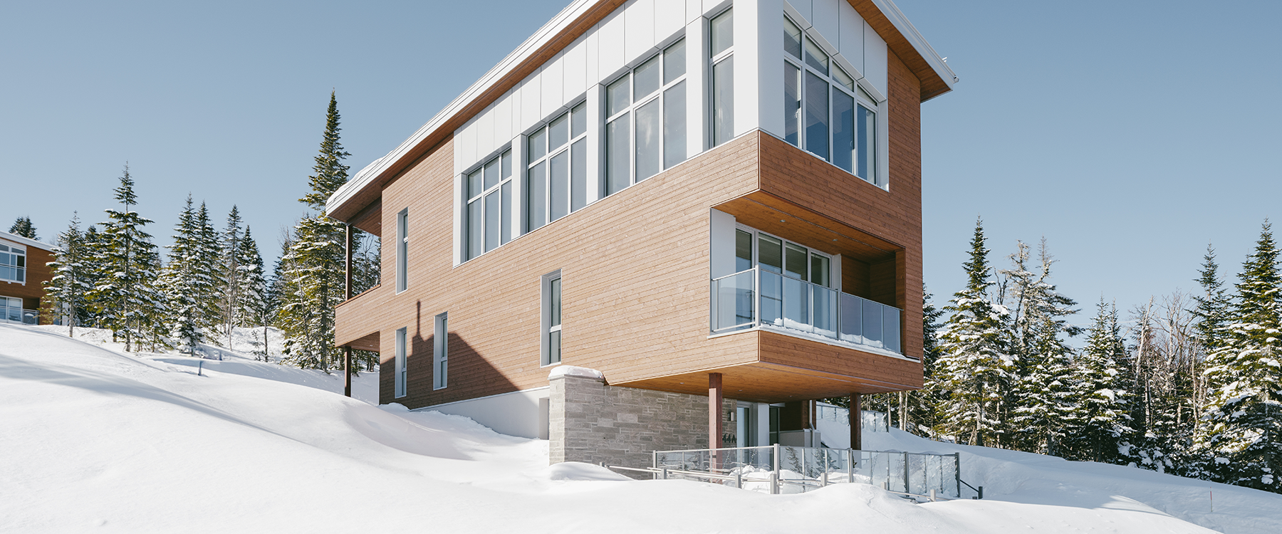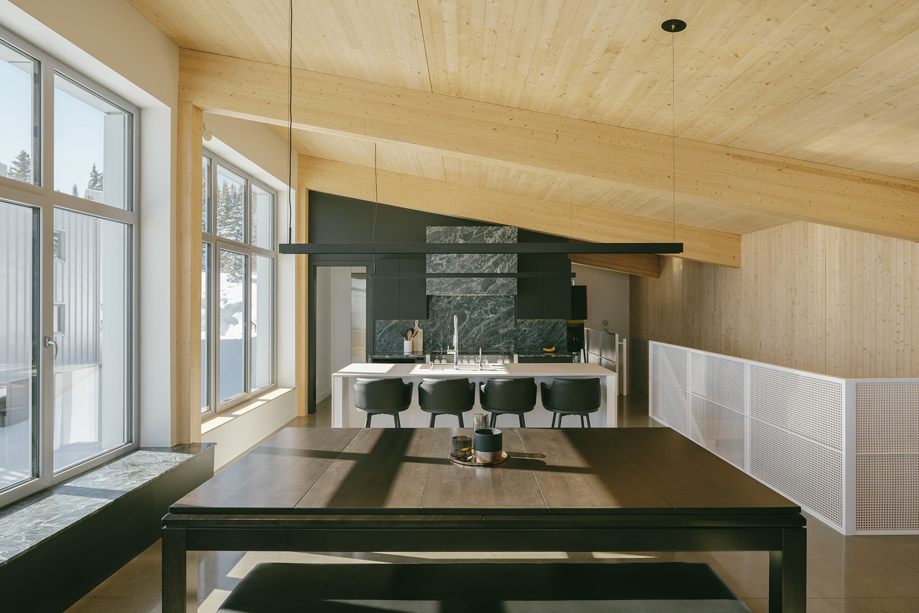 Perché au sommet du Massif de Charlevoix, à seulement deux minutes des pistes de ski, ce projet de chalet ski-in ski-out en duplex a progressivement pris forme dans la tête du client et de son architecte, Extra Architecture & Design.