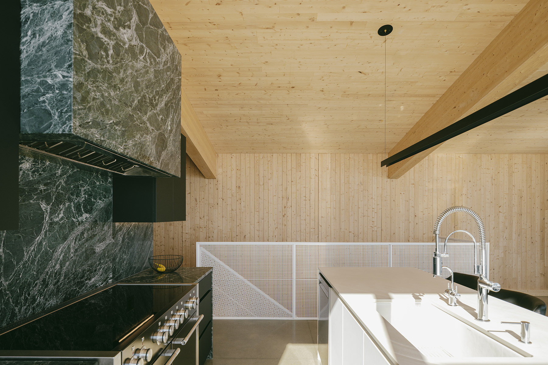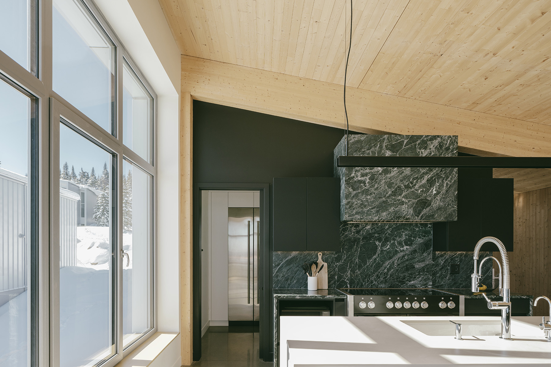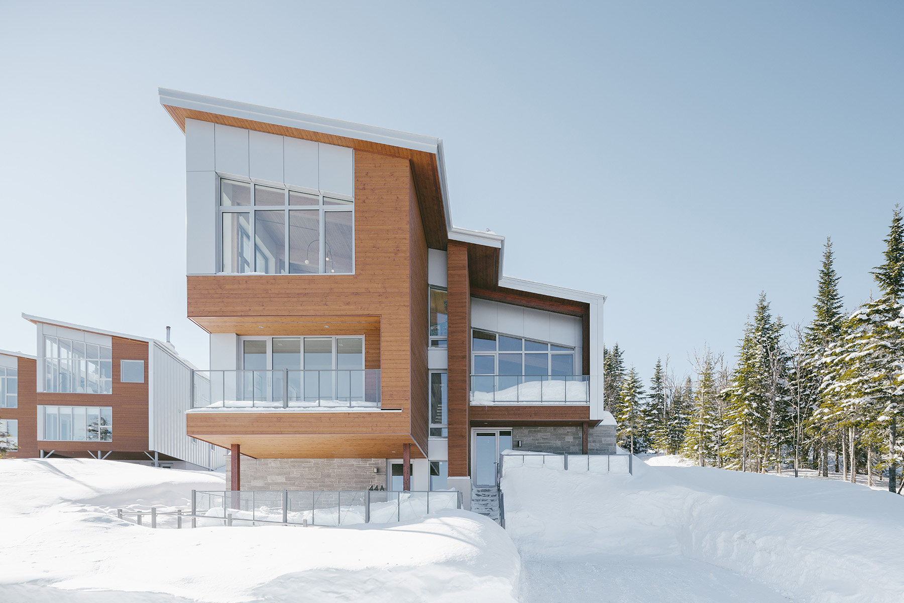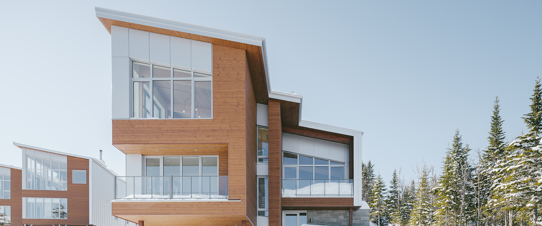 Perché au sommet du Massif de Charlevoix, à seulement deux minutes des pistes de ski, ce projet de chalet ski-in ski-out en duplex a progressivement pris forme dans la tête du client et de son architecte, Extra Architecture & Design.