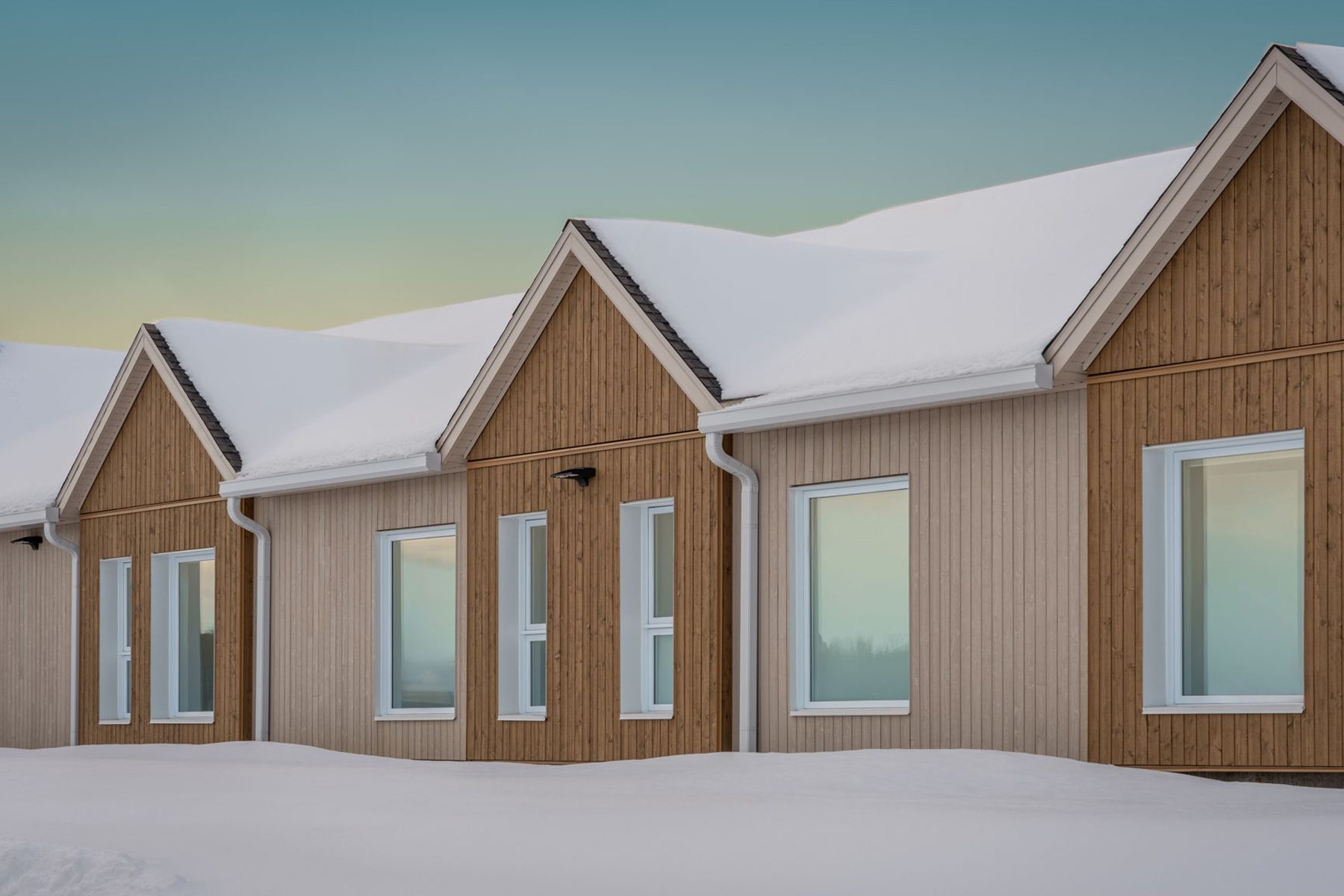 Le revêtement extérieur en bois massif se décline en deux teintes naturelles qui accentuent le découpage des maisonnettes. Le choix des matériaux et des coloris intérieurs a été fait en continuité avec le parti architectural de l’ensemble, soit sobre, naturel et stimulant.