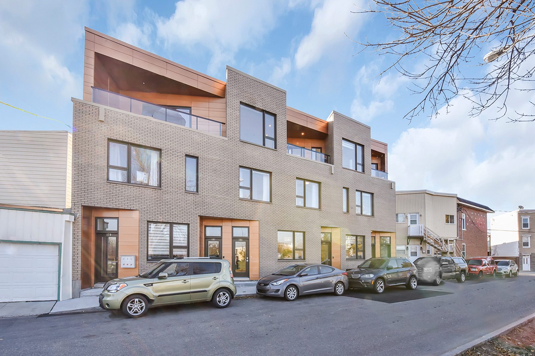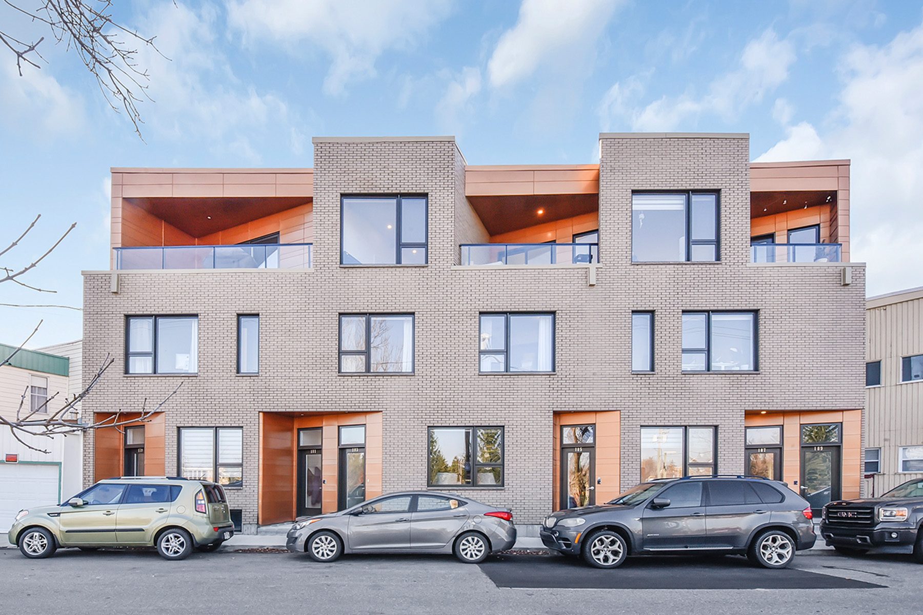 Les choix de matériaux extérieurs et de couleurs viennent s’intégrer à cet îlot type, lieu de rencontre des hangars des cours arrière et des façades de brique. La façade en brique beige est agrémentée d’un parement métallique cuivré qui lui donne un caractère unique et attrayant. À l’intérieur, les grandes unités de deux ou trois chambres offrent une finition de qualité, des espaces hautement fonctionnels, lumineux et bien ventilés.