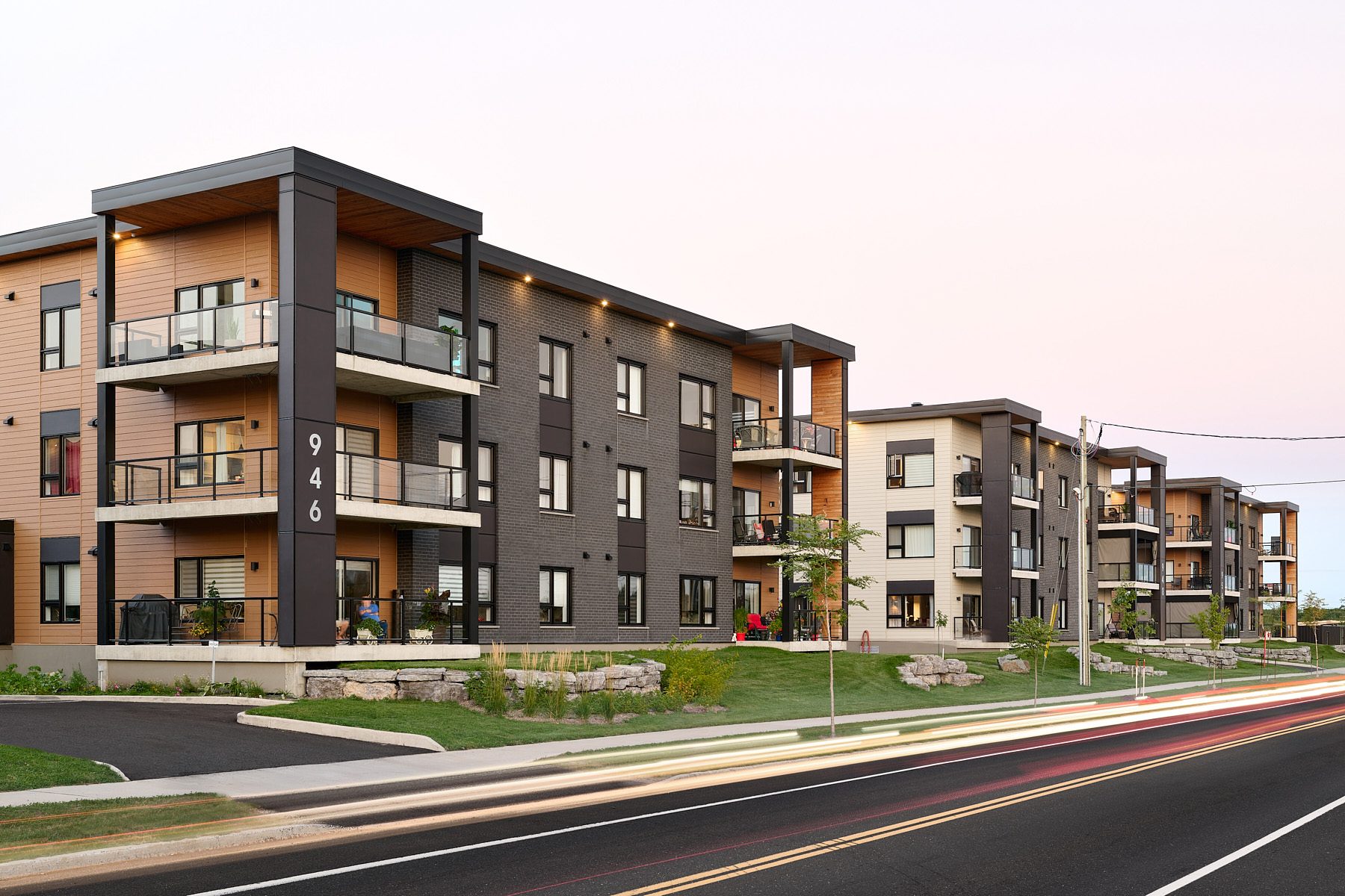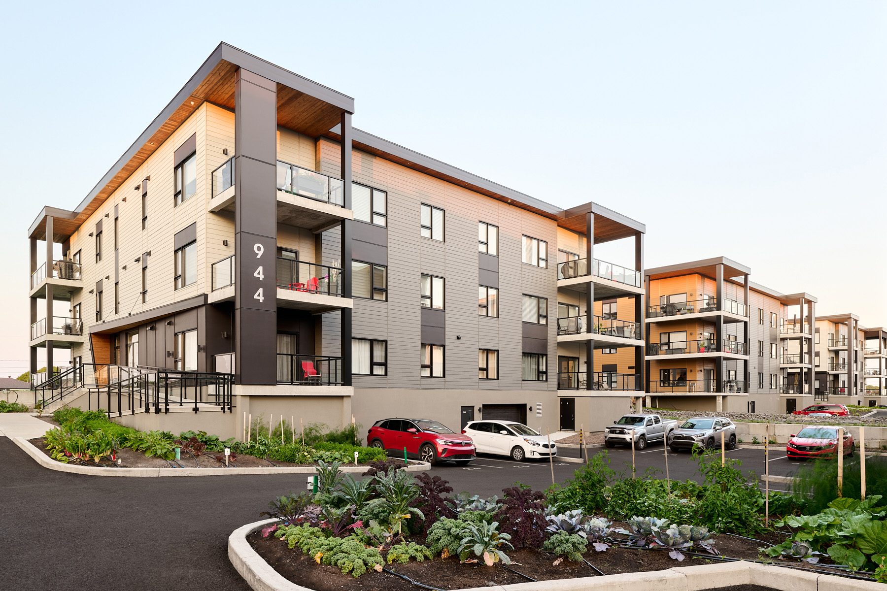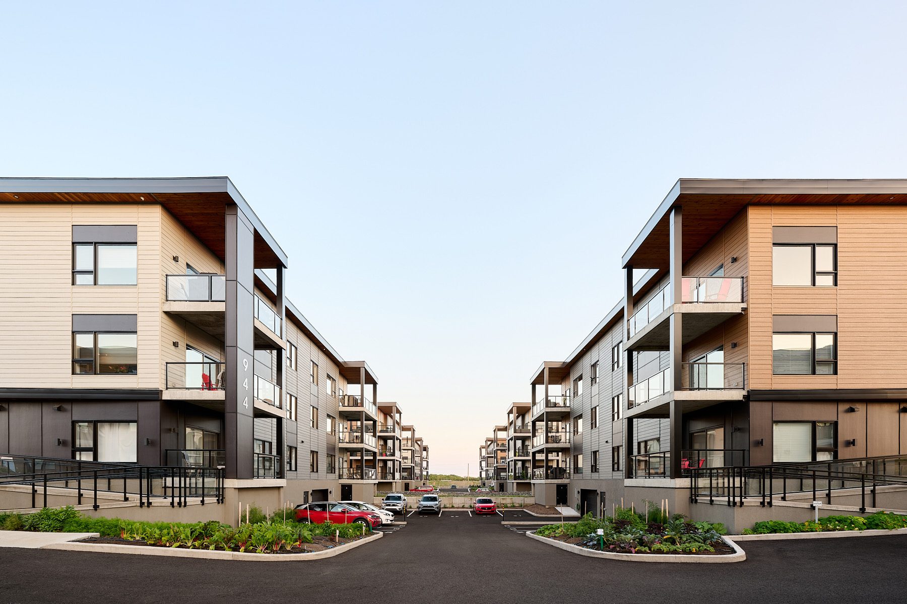 Le confort des habitants est également une priorité. Avec seulement 12 unités par immeuble (4 unités par étage) et une insonorisation conçue par des acousticiens, l’intimité et la tranquillité sont au rendez-vous. De plus, la conception permet une accessibilité universelle à l’extérieur pour tous les logements. Ces derniers peuvent aussi être adaptés à cette fin à l’intérieur.